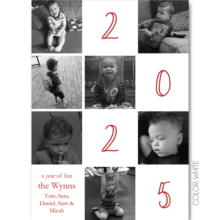 - Provide the custom holiday message you would like included (through the form we’ve provided) to customize the A Year of Fun Holiday Photo Card