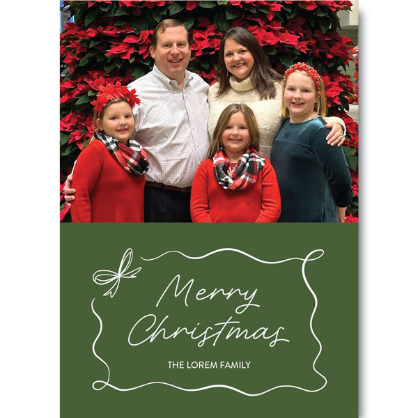 • Provide the custom holiday message you would like included (through the form we’ve provided) to customize your order of the Christmas Bow Holiday Photo Card