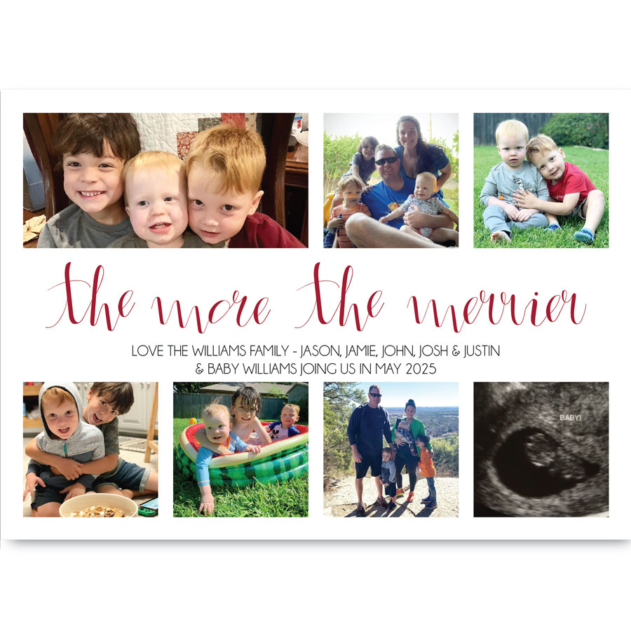 - Provide the custom holiday message you would like included (through the form we’ve provided) to customize the More the Merrier Holiday Photo Card