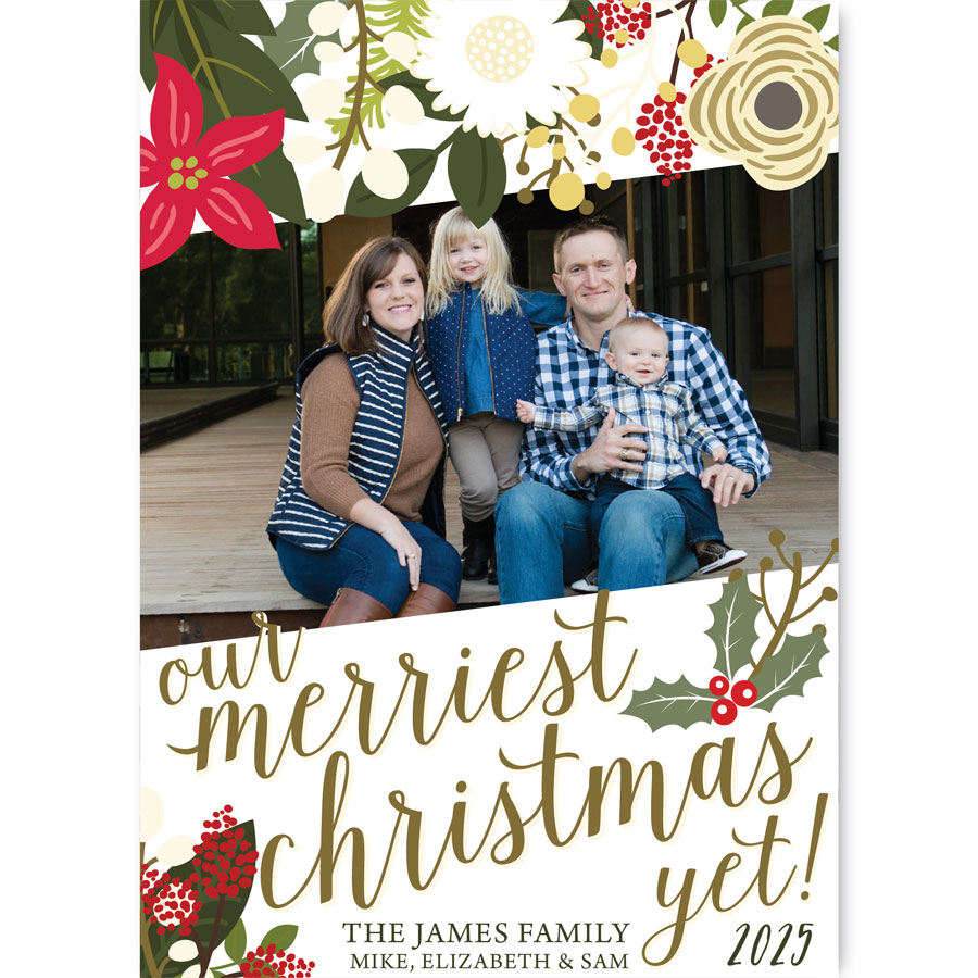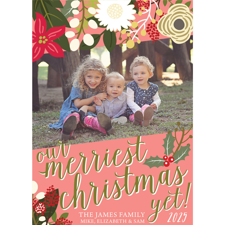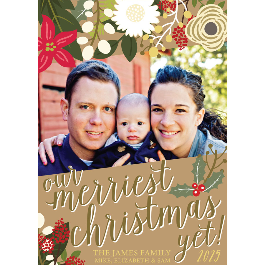 - Provide the custom holiday message you would like included (through the form we’ve provided) to customize the Our Merriest Christmas Yet Holiday Photo Card