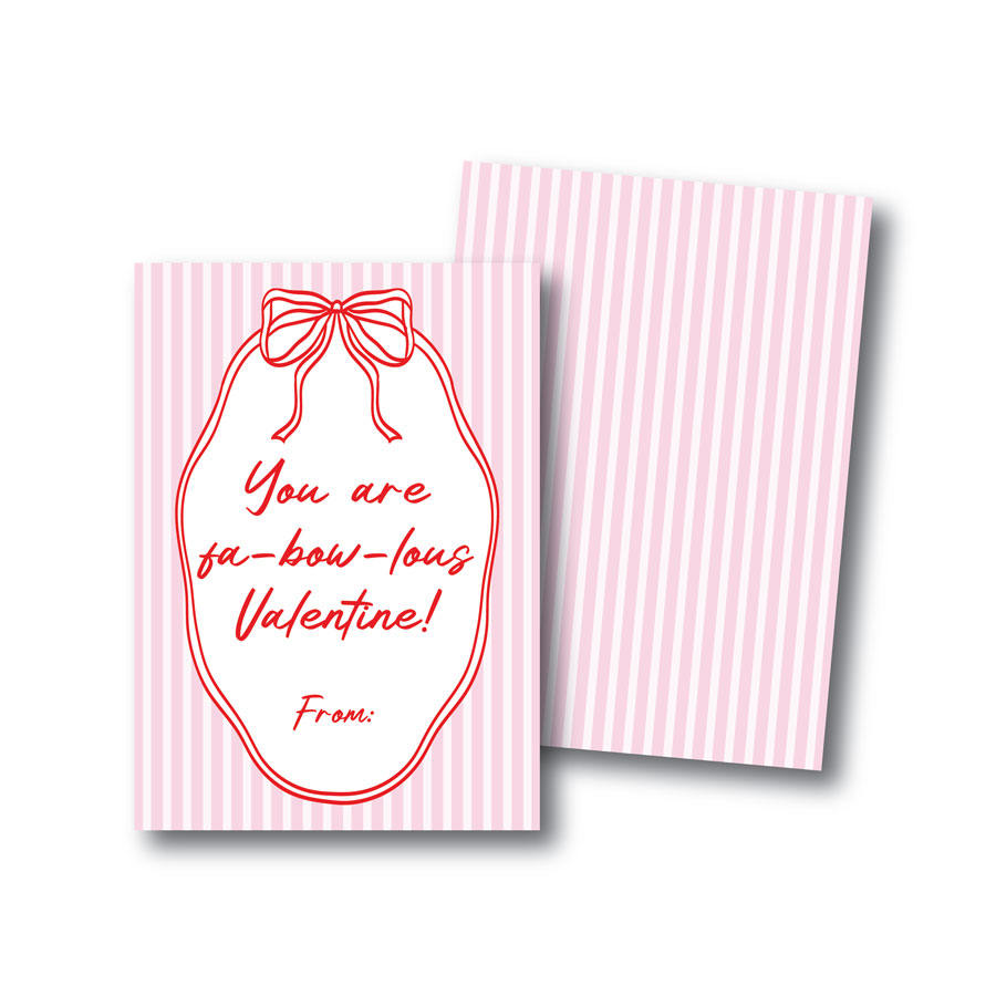 Upon purchasing these Printable Bows Valentines Cards you will be able to download a printable PDF. The downloadable PDF is set up so that the Valentine’s Cards are centered on an 8.5″ x 11″ file. Each page has 8 cards and includes crop marks so that you know where to cut.