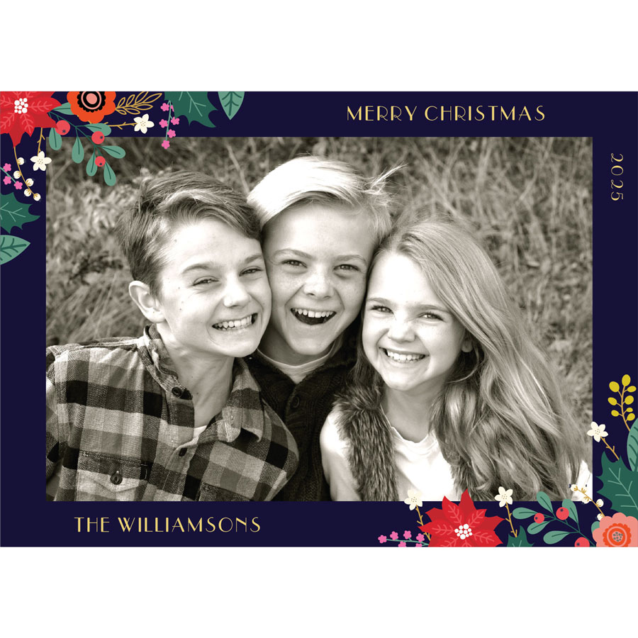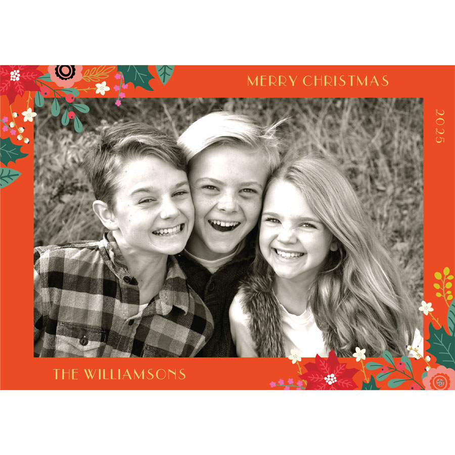 - Provide the custom holiday message you would like included (through the form we’ve provided) to customize the Winter Bouquet Holiday Photo Card