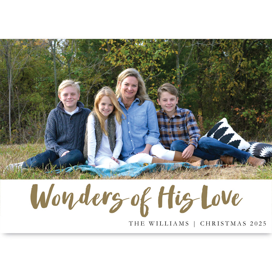 • Provide the custom holiday message you would like included (through the form we’ve provided) to customize the Wonders of His Love Holiday Photo Card